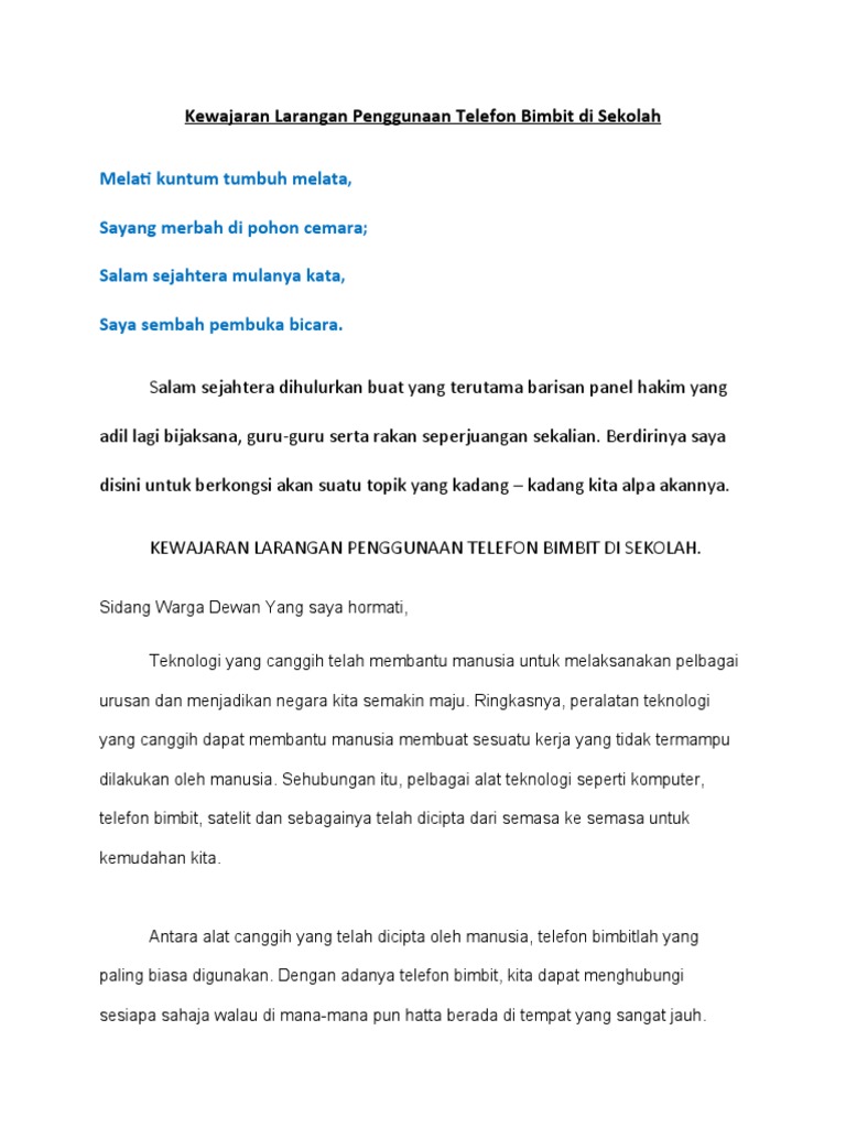 Surat siaran & garis panduan larangan penggunaan telefon bimbit. Pentadbir yang beralih ke arah dasar ini sering mengatakan bahawa mereka sedang berjuang dengan perjuangan yang berat dengan dasar yang. Pergerakan ke arah penggunaan telefon bimbit oleh pelajar bermula dengan mendidik pelajar mengenai penggunaan telefon di sekolah. Telefon bimbit yang berimitasi akan membahayakan keselamatan diri pelajar. Penggunaan telefon bimbit di sekolah.