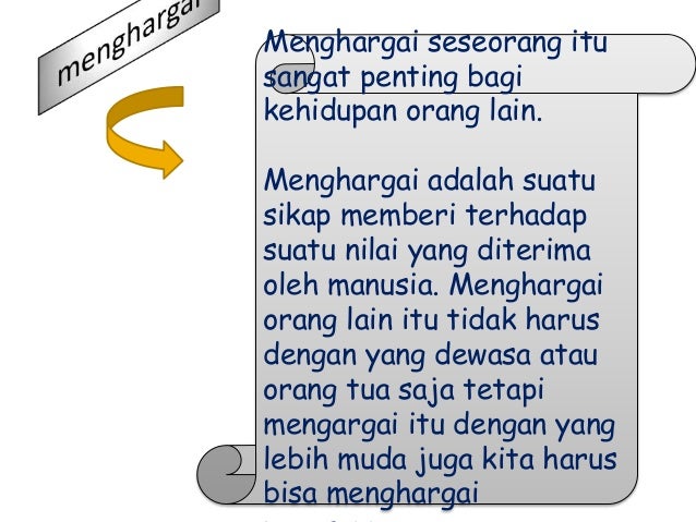 Selain itu, mungkin saja cara berpikir orang tuamu masih cara berpikir orang pada zaman mereka tumbuh dewasa, yang mungkin saja terasa sangat kolot jika dibandingkan dengan kita. Contoh karangan cara menghormati orang yang lebih tua. Selain pemahaman yang saya ceritakan diatas,ada beberapa hal di tataran tindak nyata ( action) ,diantaranya : Mengetahui orang tua anda selingkuh? Hal yang tampak sederhana ini dapat membuat anak korban perceraian tidak merasa kurang kasih sayang. Lakukan hal kecil namun berarti seperti membantu. Ini adalah kesempatan yang bagus untuk menghabiskan waktu dengan orang tua dan orang tua anda akan. Menghargai adalah cara mengekspresikan perasaan kita terhadap orang lain secara tidak langsung. Maka dari itu selalu hadapi orang tua dengan kepala dingin dan hati yang lapang. Dalam kenyatan nya, menghadapi orang tua dengan tipe ini bukan hal sulit. Tindakan tersebut adalah bentuk komunikasi nonlisan yang dapat membangun hubungan yang kokoh antara orang yang saling menghargai. Mereka merupakan golongan yang paling berjasa kepada keluarga, masyarakat dan negara. Selain orang tua, guru juga adalah orang tua ke dua di sekolah.